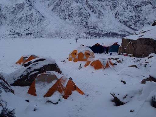 هوا در چند روز گذشته برفی – آفتابی بوده است . این روزها ، زمان ریزش برف های تازه است . تیم ها در بیس کمپ هستند ، در انتظار کاهش بهمن ها و بهبود شرایط هوا .